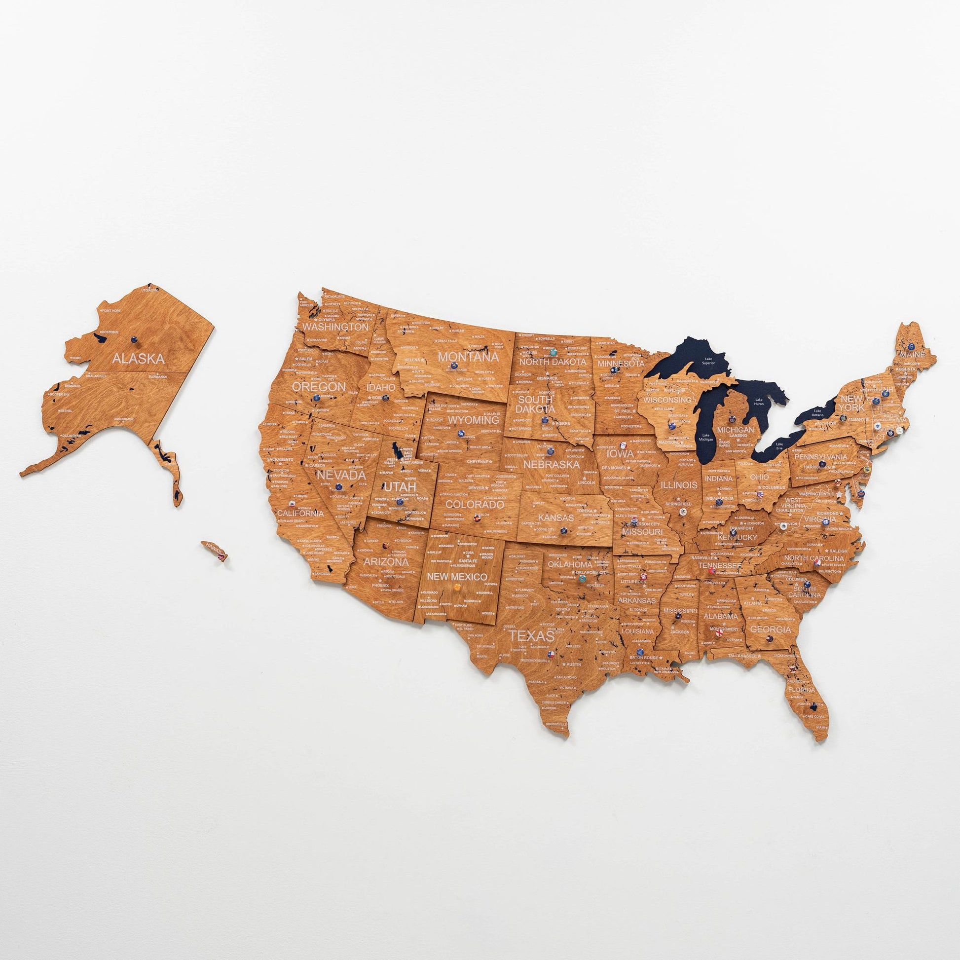 Available in various sizes, this 3d wall map of usa can be tailored to fit spaces ranging from cozy apartments to spacious offices. The map is available in three versions — Blank, Prime, and Prime+ — so you can choose the style that best suits your needs and aesthetic preferences.