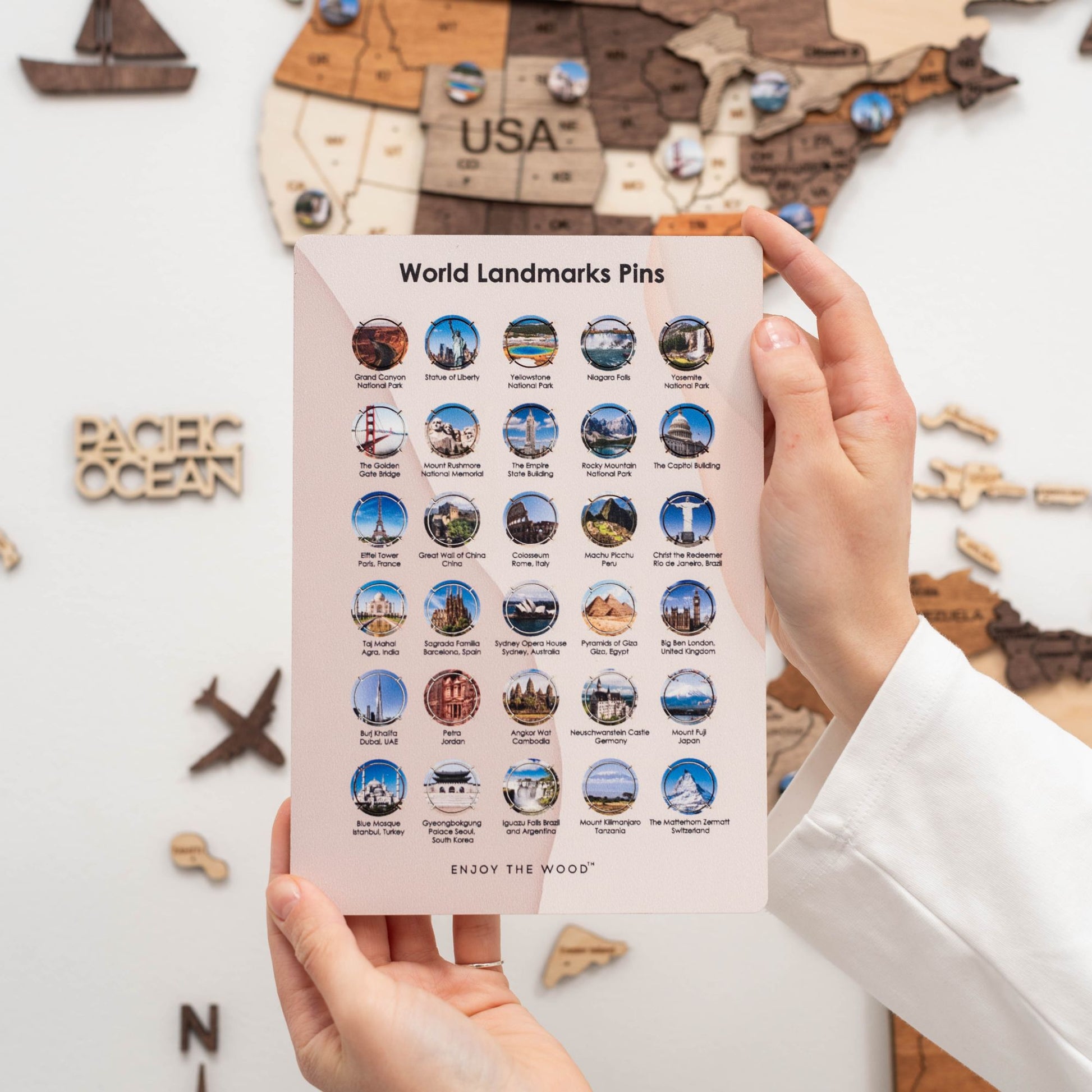 Transform your travel experience with My Wooden Map and create a stunning visual representation of your adventures with Wooden World Landmarks Pins!